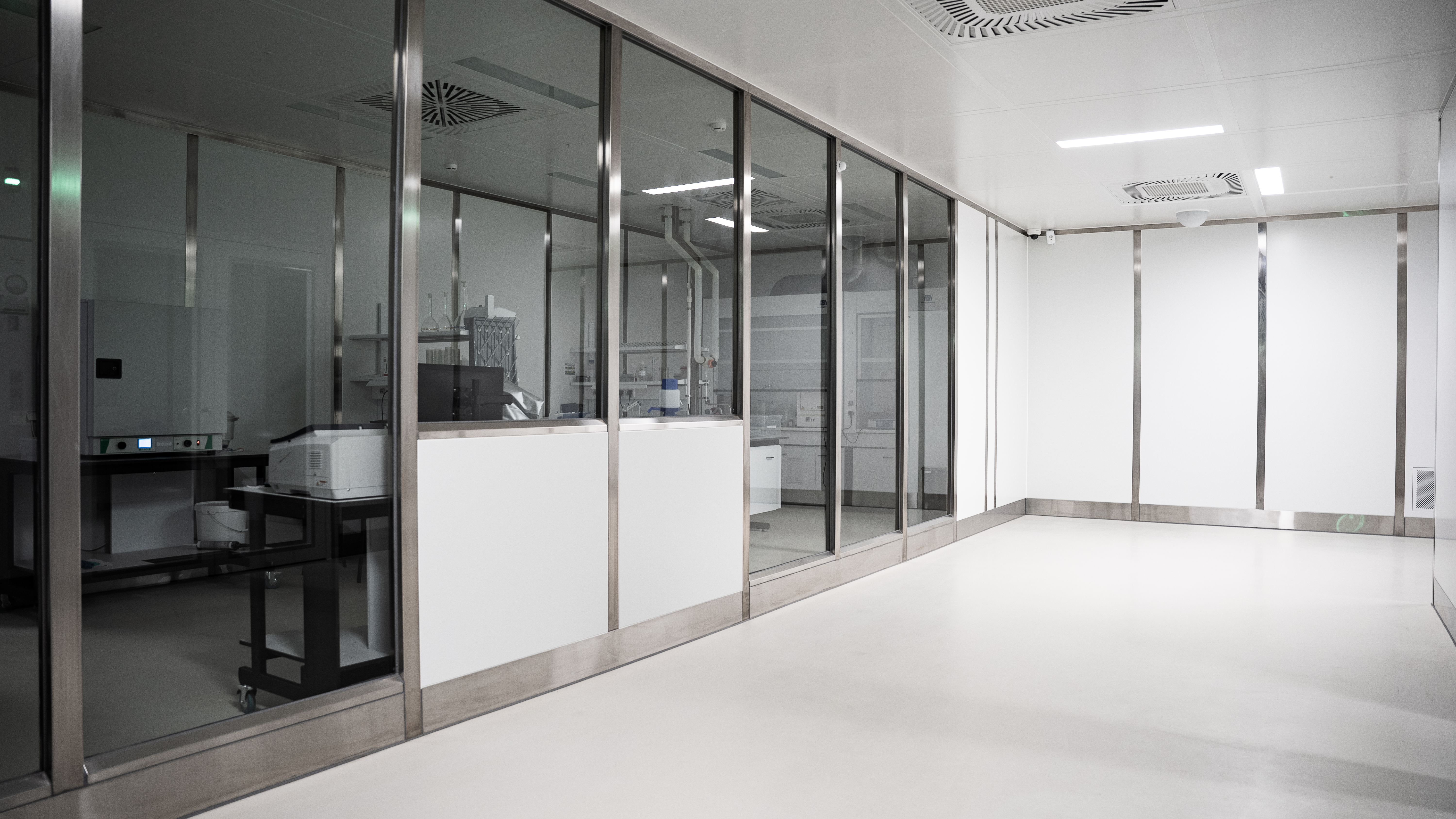 All installation materials (walls, ceilings, floors) should be able to be cleaned friendly and chemically resistant, also should not release polluting particles and not be a source of dust. All this implies flat and non-porous surfaces resistant to biological contamination